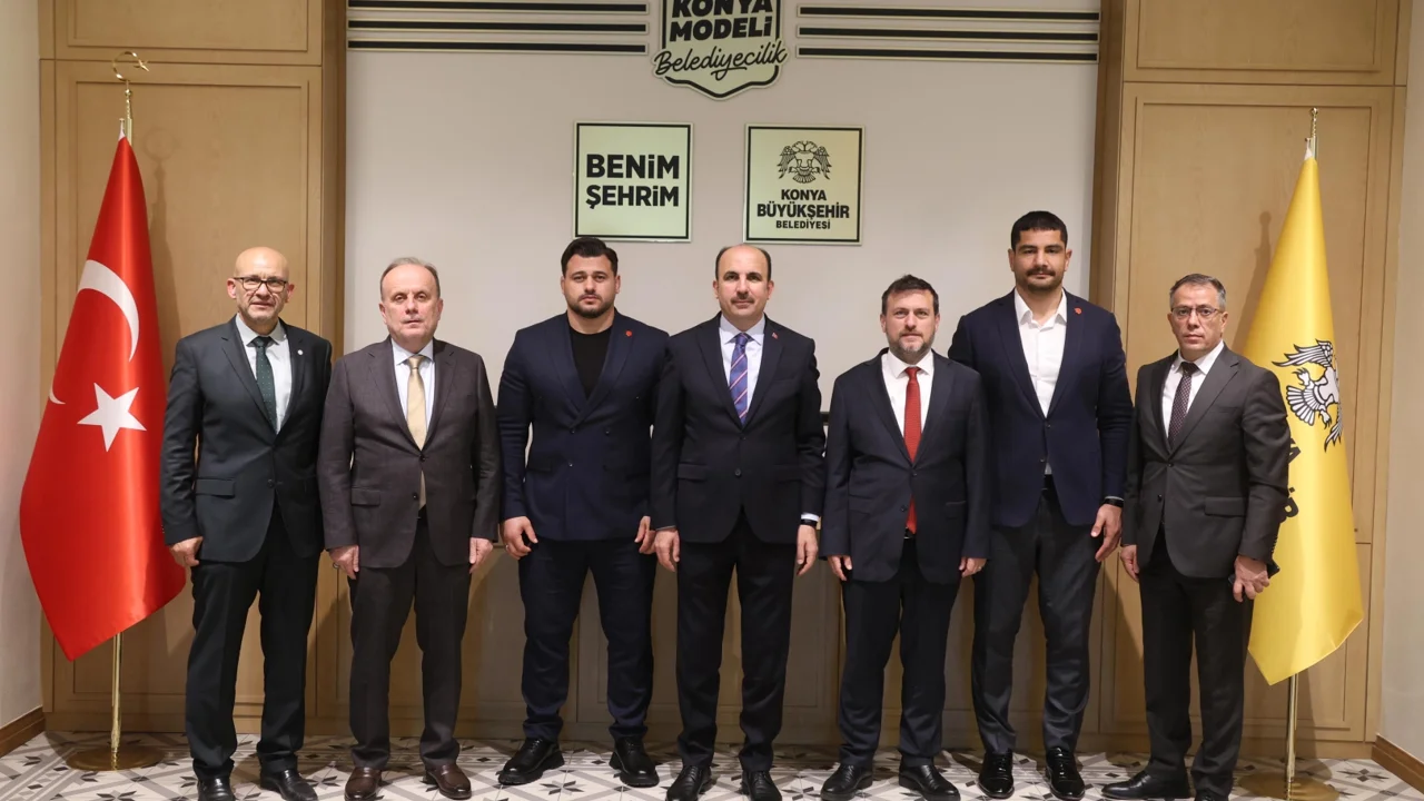 AK Parti Konya Milletvekili Mehmet Baykan, Türkiye Güreş Federasyonu Başkanı Taha Akgül, 2026 Avrupa Güreş Şampiyonası'nda altın madalya kazanarak 13. kez Avrupa şampiyonu olan ve tarihe geçen Milli Güreşçi Rıza Kayaalp, Milli Olimpiyat Komitesi Başkanı Ozan Çakır, Konya Gençlik ve Spor İl Müdürü Muzaffer Çintimar ve Konya Amatör Spor Kulüpleri Federasyon Başkanı Remzi Ay, Konya Büyükşehir Belediye Başkanı Uğur İbrahim Altay'ı ziyaret etti.
