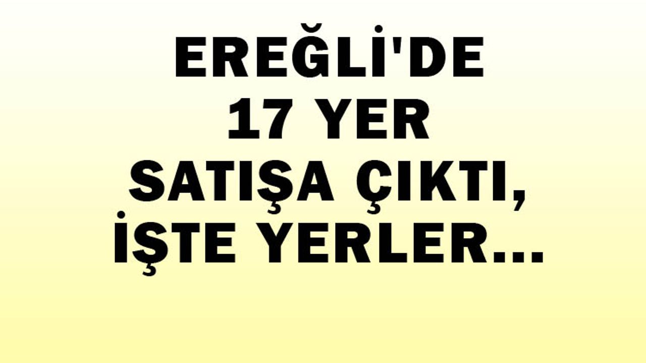 Karadeniz Ereğli Milli Emlak Müdürlüğü'nden yapılan duyuruya göre, Üçköy, Elmacı, Yazıcılar, Osmanlar, Danışmatlı, Esenköy, Akkaya, Kızılca, Abdi, Buruncuk, Keşkek, Terzi, Cemaller Köyleri ile Süleymanlar ve Kestaneci Mahallelerinde arsa, tarla, hali arazi, çalılık ihale yöntemi ile satışa çıkacak.