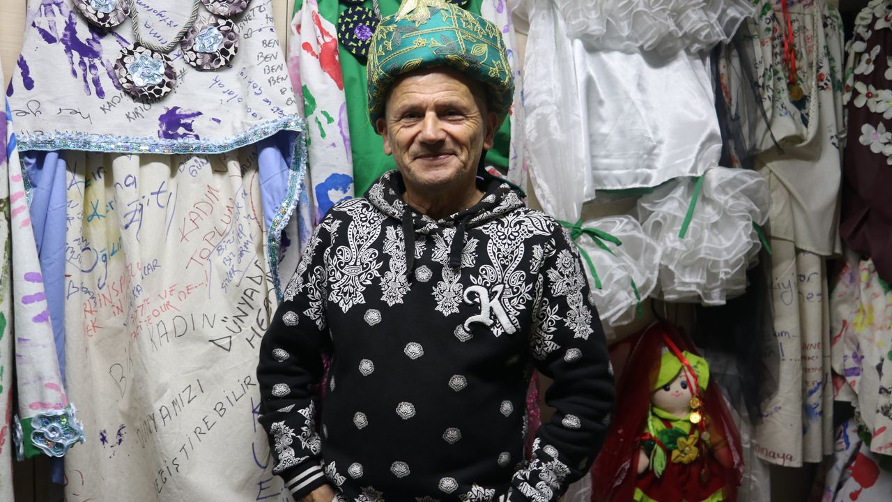 Zonguldak'ta yaşayan 65 yaşındaki tiyatro sanatçısı Şenol Dönmez, çöpe atılan ve kullanılmayan malzemelerden el işçiliğiyle sahne kostümü dikiyor.