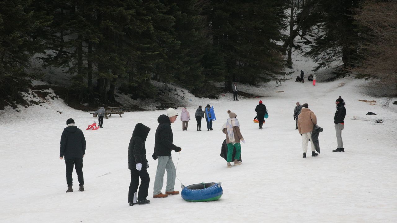 Özellikle çocuklu ailelerin yoğunlukta olduğu Abant'ta çocuklar ve gençler, kar kalınlığının 20 santimetreyi bulduğu alanlarda şambriyeller, kızaklar ve poşetlerle kayarak keyifli vakit geçirdi.