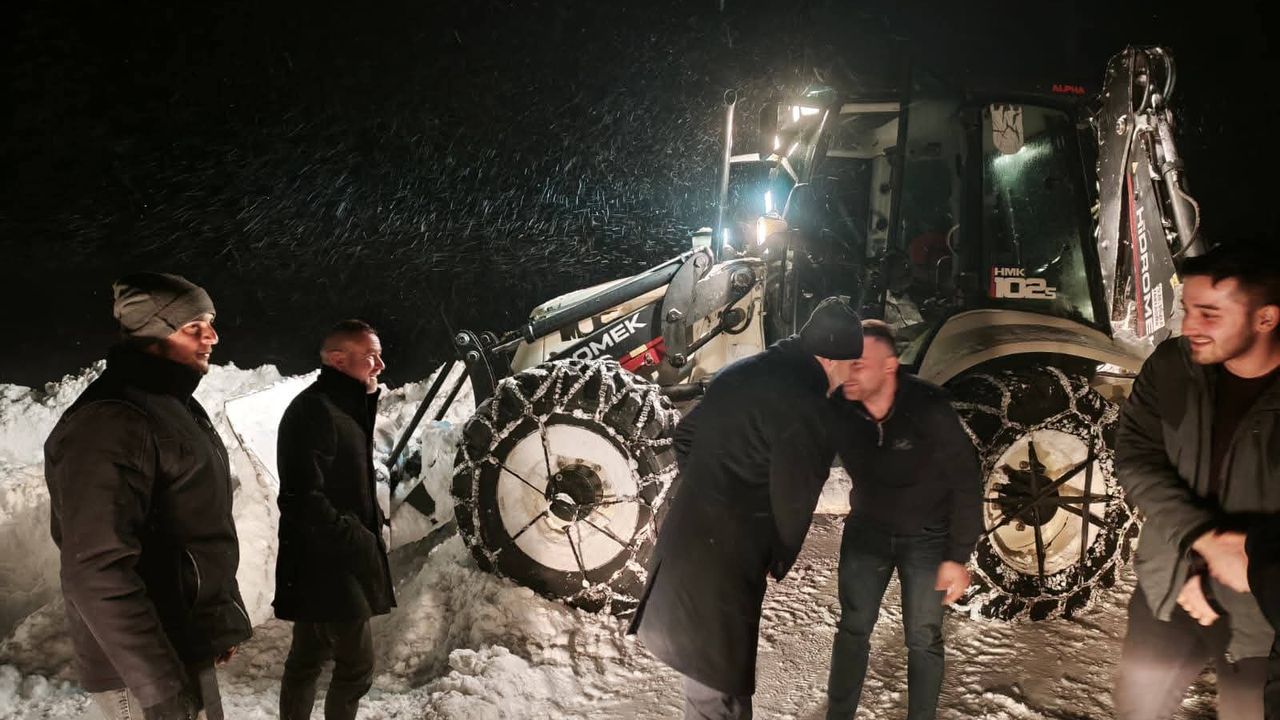 Kar yağışının yoğun olduğu ilçede yeni yılın ilk saatlerinde de karla mücadele çalışmaları devam etti.