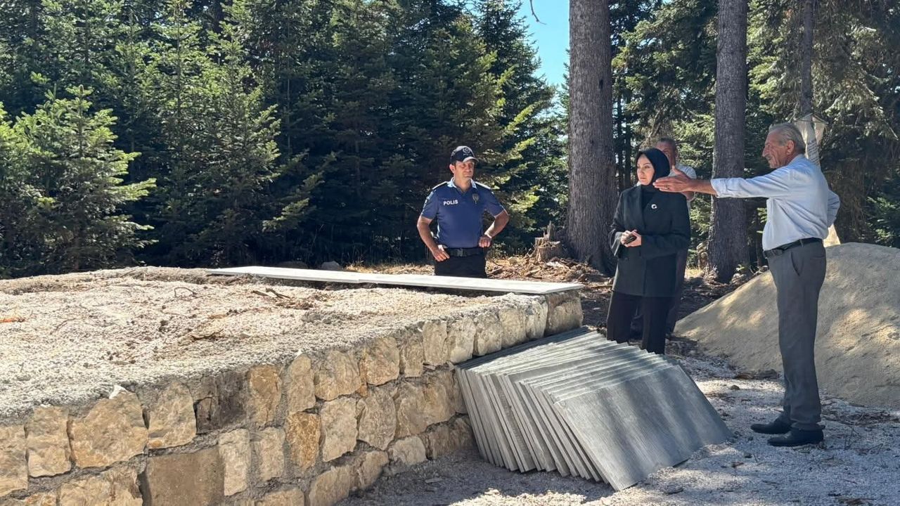 Alınca Gazi türbesinde devam eden restorasyon çalışmalarını yerinde inceleyen Çelebi, mahalle muhtarı Abdullah Değirmenci'den bilgi aldı.
