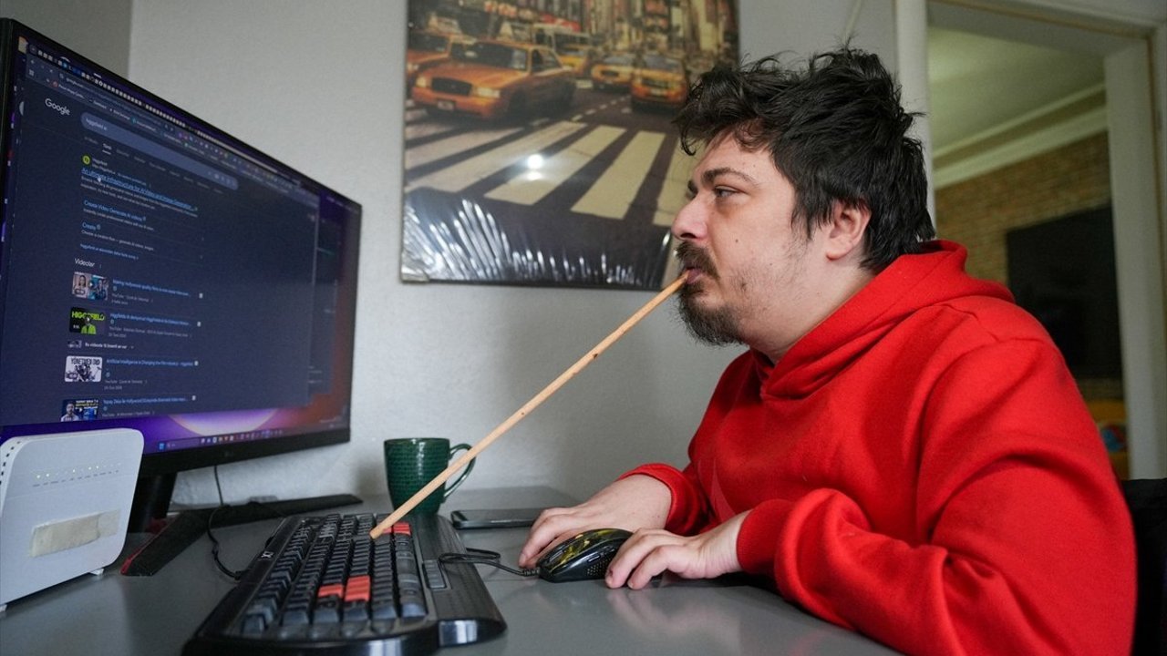 O zorlu günleri 'diri diri mezara girdim' sözleriyle anlatan Şen, dayısının önerisiyle ağzında çubukla klavye kullanmayı öğrendi ve dijital dünyanın kapılarını araladı.