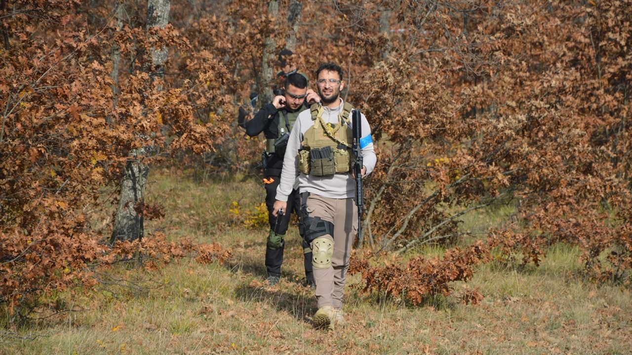 Airsoft tutkunları, Kuşkonağı Korusu'nda bir gece kamp ve gece oyunu gerçekleştirdikten sonra, airsoft için özel üretilen silahların replikalarıyla gün boyu mücadele etti.