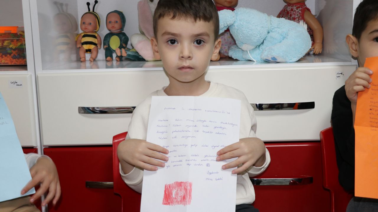 Zübeyde Hanım Anaokulu öğrencileri, Değerler Eğitimi Projesi kapsamında, asker ve polislere aileleriyle birlikte mektup yazdı.