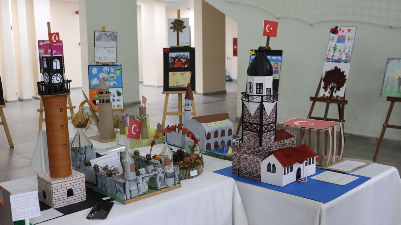 Sınıf öğretmeni Aysun Türkmen öncülüğünde hazırlanan sergiyle, maketi yapılan mimari yapılar okul öğrencileri ve öğretmenlerine sergilendi.