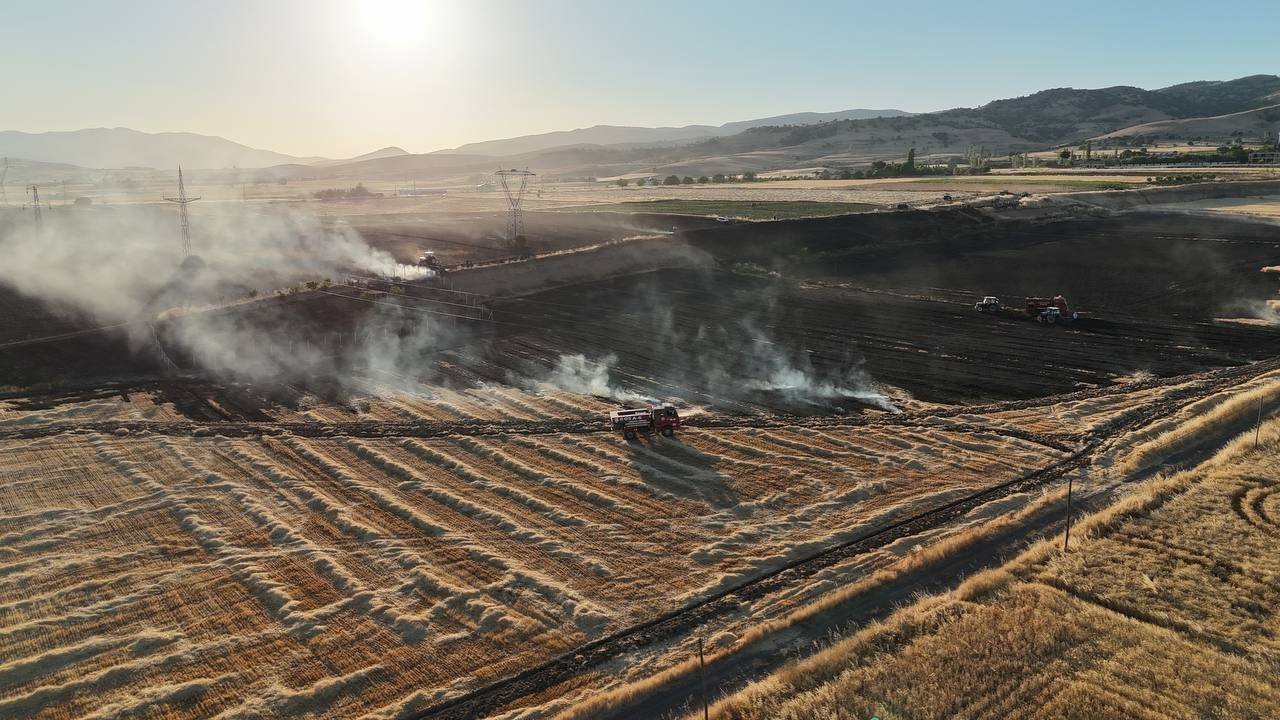 İlçeye bağlı Akören köyünde arpa ve buğday ekili tarlada henüz belirlenemeyen nedenle yangın çıktı.