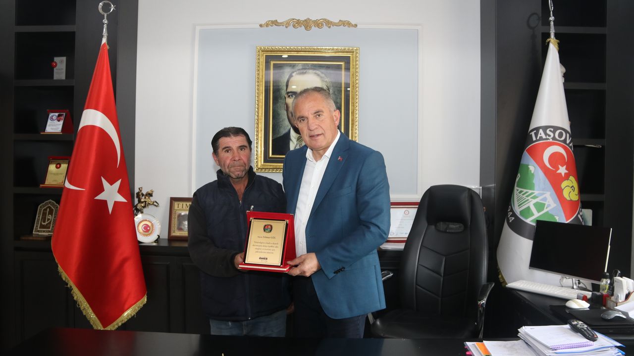 'Temizlik işlerinde çalışan Yılmaz kardeşimiz dün akşam Gazi Mustafa Kemal Atatürk Millet Bahçemizde temizlik yaptığı esnada bir adet çanta bulmuş ve birim amirlerine teslim etmiş. Biz de araştırmamız sonucunda çantanın sahibini bulduk. İçerisinde döviz, vatandaşın kimlik ve pasaportu ve bir takım ziynet eşyaları vardı. Kendilerine teslim ettik. Bu duyarlı davranışından dolayı Yılmaz kardeşimize çok teşekkür ediyoruz. Belediye olarak kendisini bir plaket ile ödüllendirdik.'