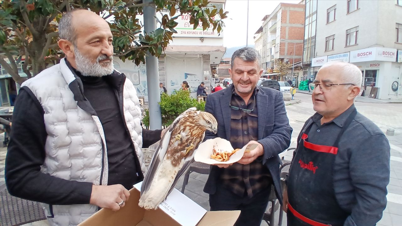 Sanayi Mahallesi'nde yürüyen Fikret Güngör, yol kenarında yaralı halde duran bir kızıl şahin gördü.