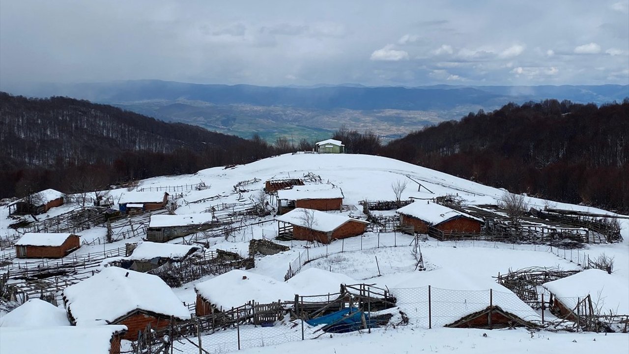 Beyaza bürünen 1700 rakımlı yaylalarda güzel görüntüler oluştu, yayla evlerinin çatılarında buz sarkıtları meydana geldi.