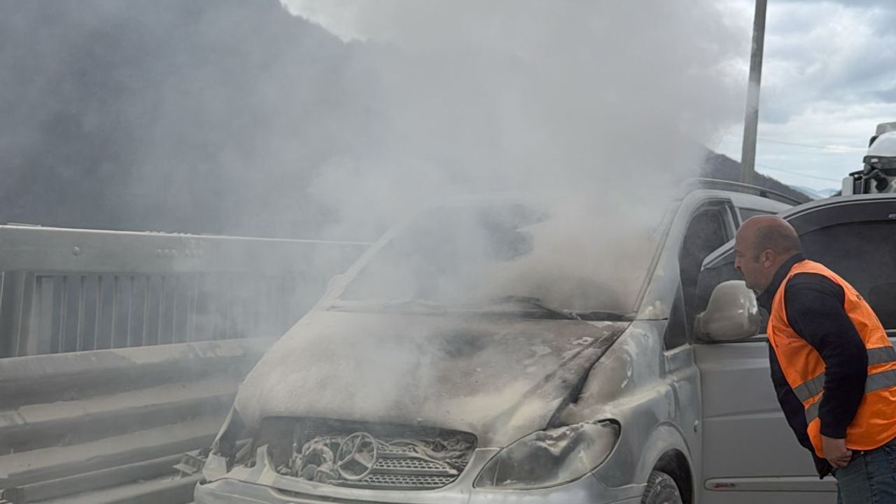 Bunun üzerine bölgeye sağlık, itfaiye ve jandarma ekipleri sevk edildi. İtfaiye, aracın motor kısmındaki yangını söndürdü.