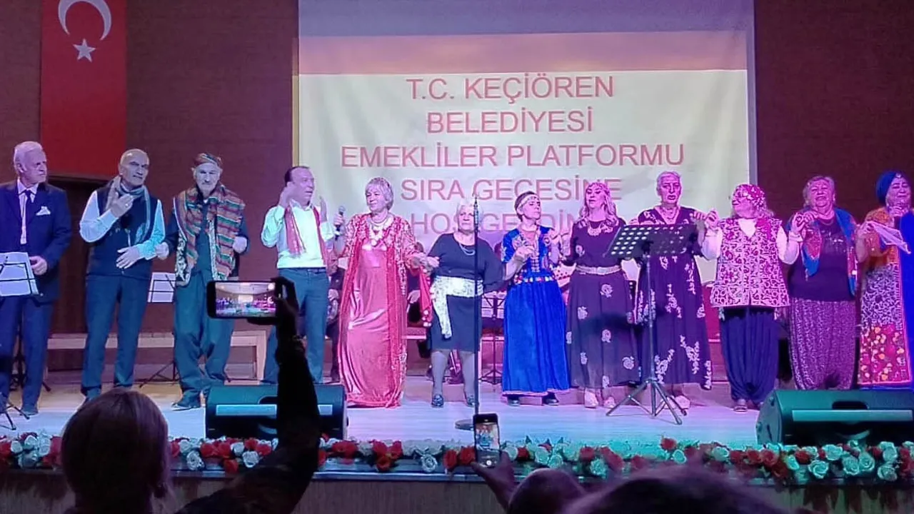 Keçiören Belediyesi Emekliler Platformu, düzenlediği Sıra Gecesi etkinliğiyle katılımcılara unutulmaz bir akşam yaşattı. Yunus Emre Kültür Merkezi'nde düzenlenen etkinlikte birbirinden eğlenceli türküler seslendirilirken, vatandaşlar doyasıya eğlendi.