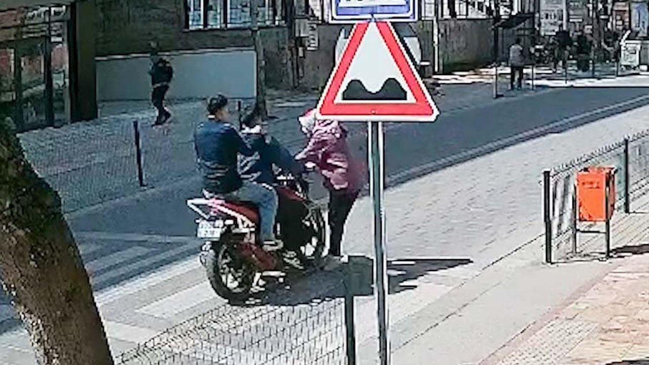 Zonguldak'ın Çaycuma ilçesinde motosikletin çarpması sonucu anne ile çocuğunun yaralandığı kaza, güvenlik kamerasınca kaydedildi.