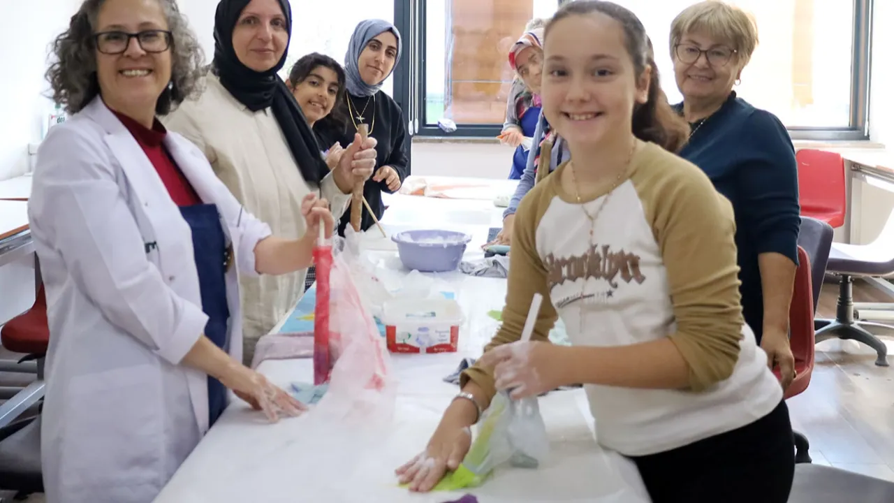 Anneler, kendi branşlarındaki çalışmaları çocuklarına adım adım gösterirken minikler de anneleriyle yan yana üretmenin heyecanını yaşadı. Malzemeleri paylaşan, tasarımları birlikte şekillendiren ve renkli ürünler ortaya çıkaran anne-çocuk ekipleri atölyelere sıcak bir atmosfer kattı. Pizza ve kurabiye yapımı, ebru denemeleri, kupa boyama gibi uygulamalar ise etkinliklerin en keyifli anlarına sahne oldu.