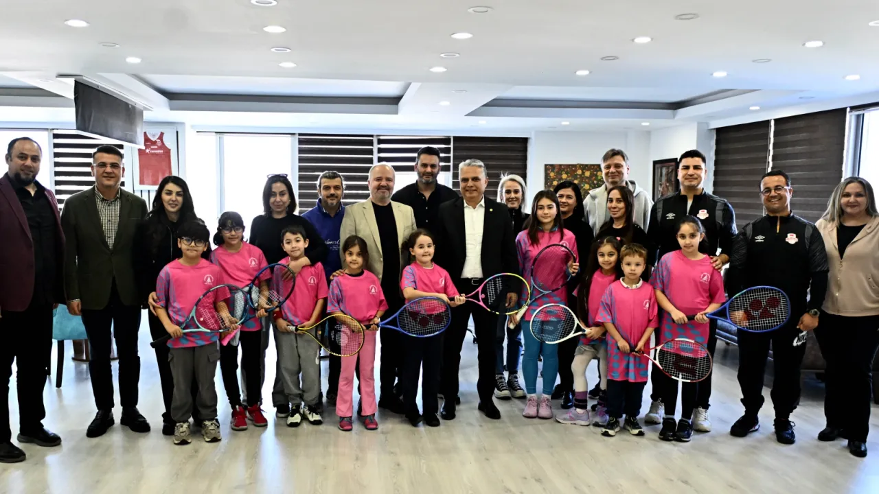 Antalya'da Muratpaşa Belediyesi 6-12 yaş grubu Tenis Performans Takımı, Muratpaşa Belediye Başkanı Ümit Uysal'ı makamında ziyaret etti.