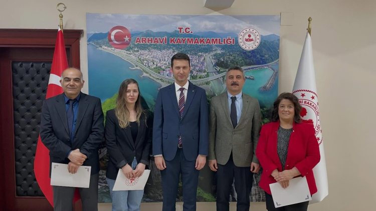 Artvin'de Arhavi Kaymakamı Burak Çimşir, özverili çalışmalarıyla dikkat çeken Arhavi Nermin Çarmıklı İlçe Halk Kütüphanesi personelini 'Başarı Belgesi' ile ödüllendirdi.