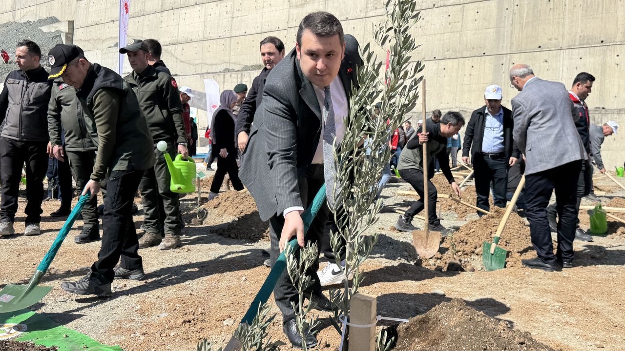 Konuşmaların ardından Vali Ergün, davetliler ve öğrenciler, 200 zeytin fidanını toprakla buluşturdu.