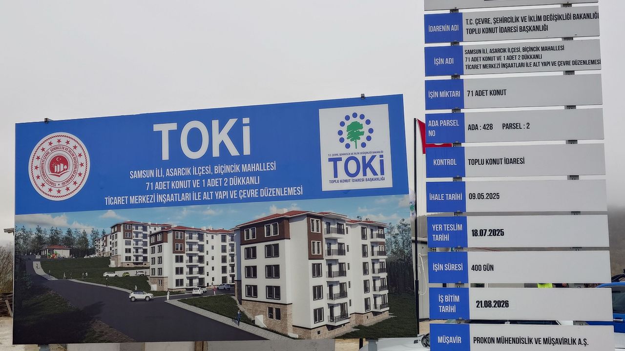 Bu kapsamda Asarcık ilçesi Biçincik Mahallesi'nde 71 konut ile 2 dükkanlı ticaret merkezi yapılması için çalışmalar sürüyor.