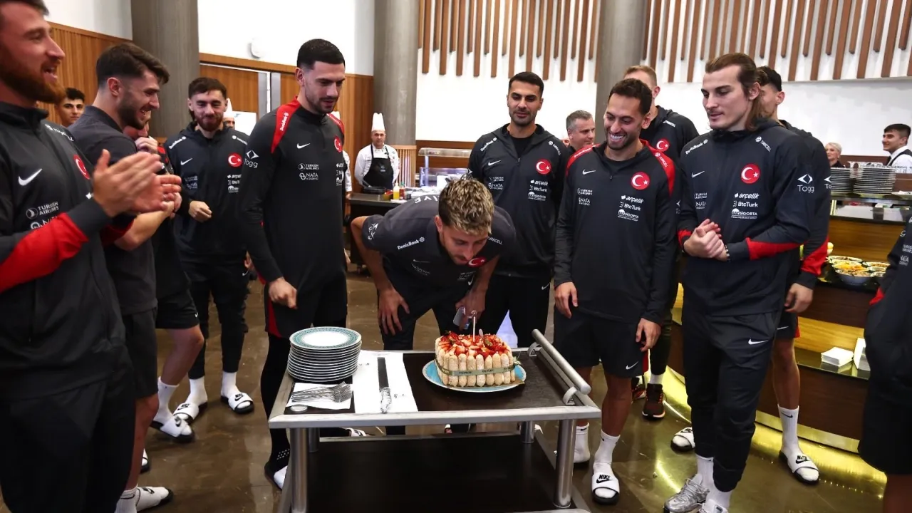 A Millî Takım'ın 2026 Dünya Kupası Avrupa Elemeleri için Riva'da kamp yaptığı sırada, aday kadroda yer alan oyuncumuz Atakan Karazor'un doğum günü coşkuyla kutlandı. Öğle yemeği sonrası hazırlanan pastayı kesen Atakan'a ilk dilimi kaptan Hakan Çalhanoğlu ikram etti.