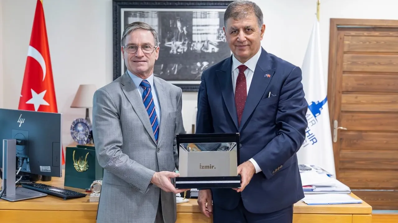 Avustralya'nın İstanbul Başkonsolosu Tony Huber, eşi Kate Huber ile İzmir Büyükşehir Belediye Başkanı Dr. Cemil Tugay'ı ziyaret etti. Görüşmede çevre, turizm ve kent planlama alanlarındaki iş birliği olanakları ele alındı.