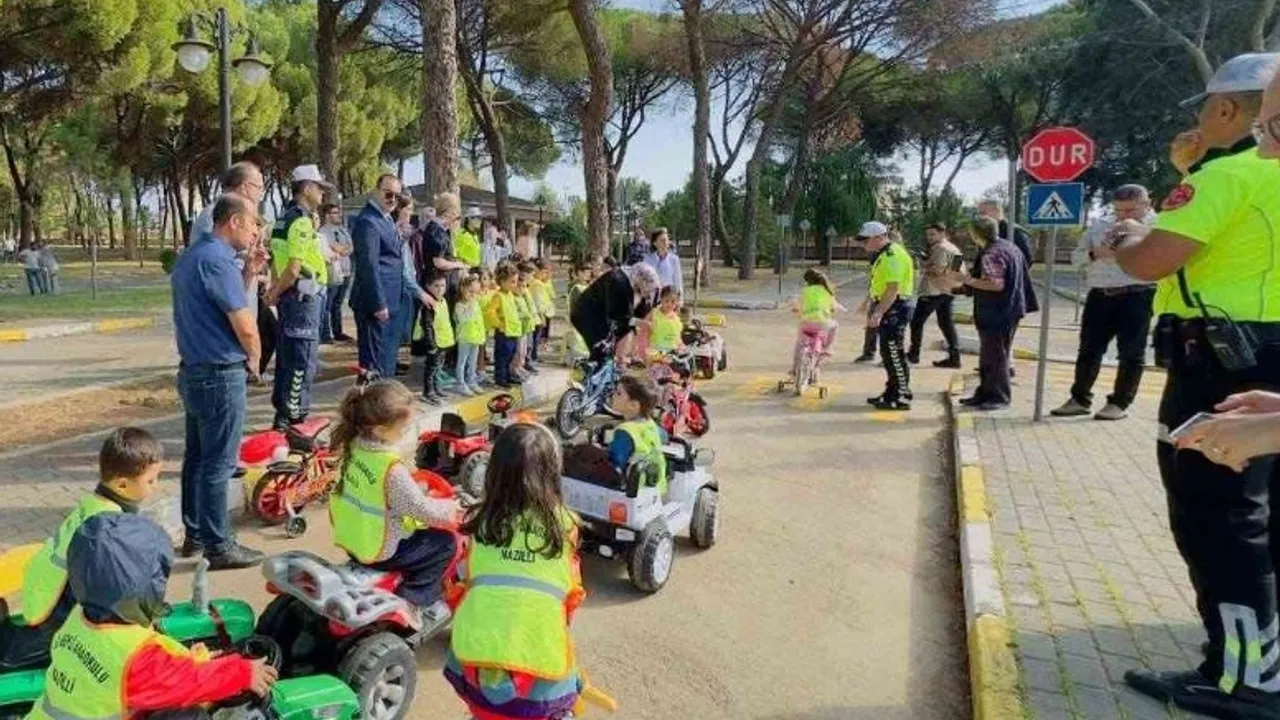 Aydın'ın Nazilli ilçesinde çocuklarda trafik bilincinin oluşturulması amacıyla trafik parkına gelen ve direksiyon başına geçen 45 ilkokul öğrencisi, aldıkları uygulamalı trafik eğitimlerinin ardından 'trafik dedektifi' oldu.