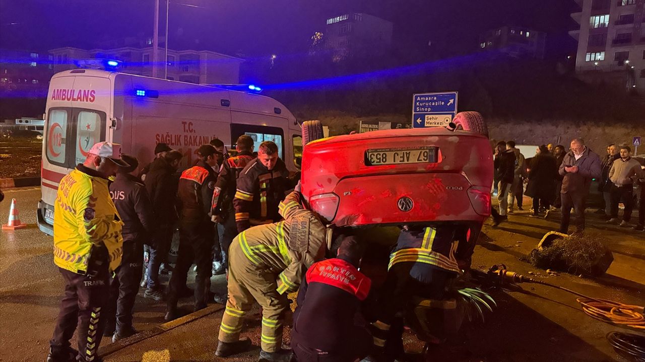 Daha sonra otomobil, Amasra kara yolundaki kavşakta refüje çarparak takla attı.