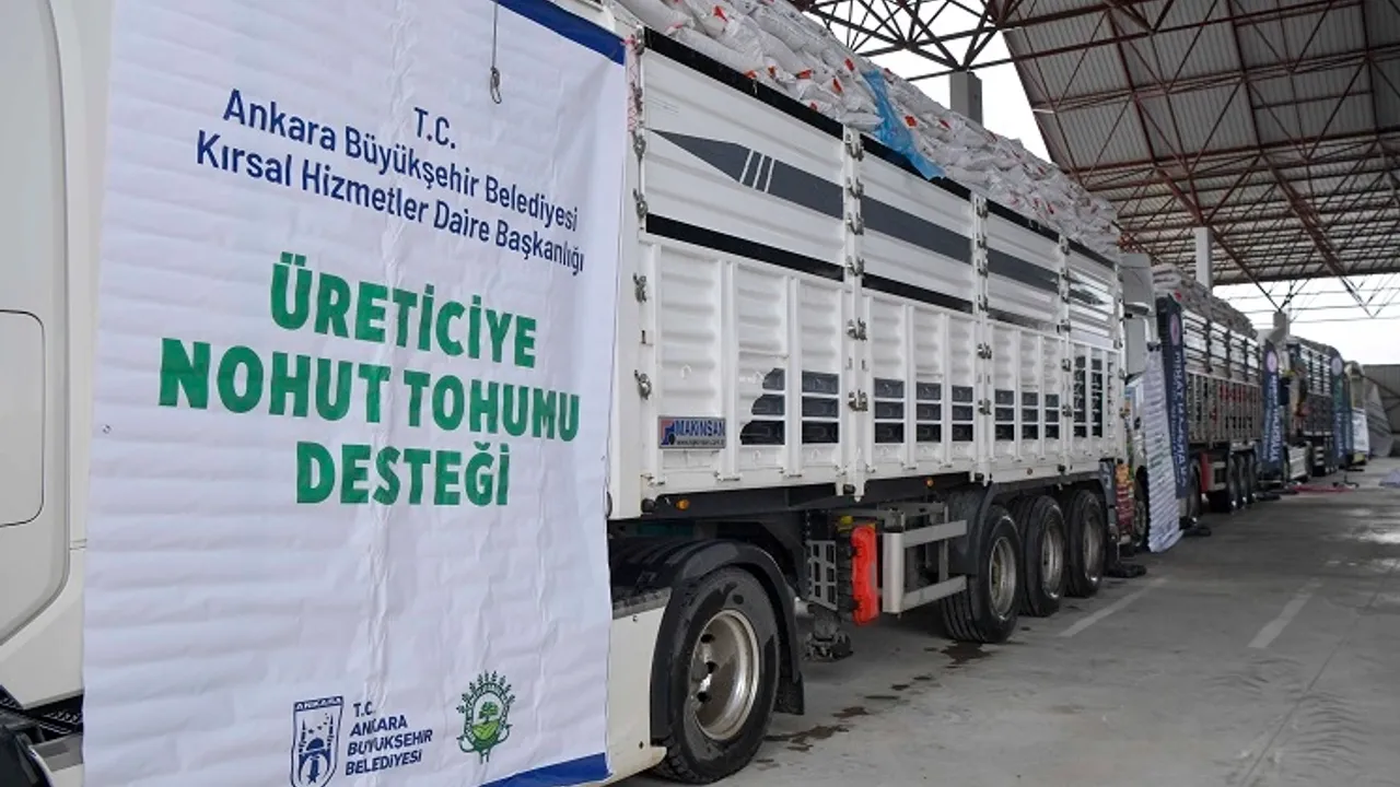 Ankara Büyükşehir Belediyesi, yüzde 50 hibe ile nohut tohumu desteğini tamamladı. Balâ'dan Çubuk'a, Polatlı'dan Nallıhan'a kadar 25 ilçede 1 milyon 500 bin kilogram sertifikalı tohum üreticiyle buluştu. Destek sayesinde yaklaşık 100 bin dekar alanın ekilmesi hedefleniyor.