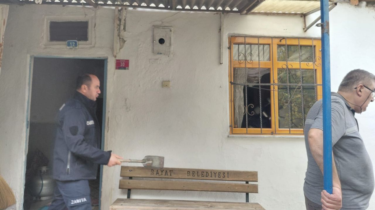 Evde yalnız yaşayan ve dumandan etkilenen Ayşe Mercan, itfaiye tarafından çıkarıldıktan sonra sağlık ekiplerince Bayat Devlet Hastanesine kaldırıldı.