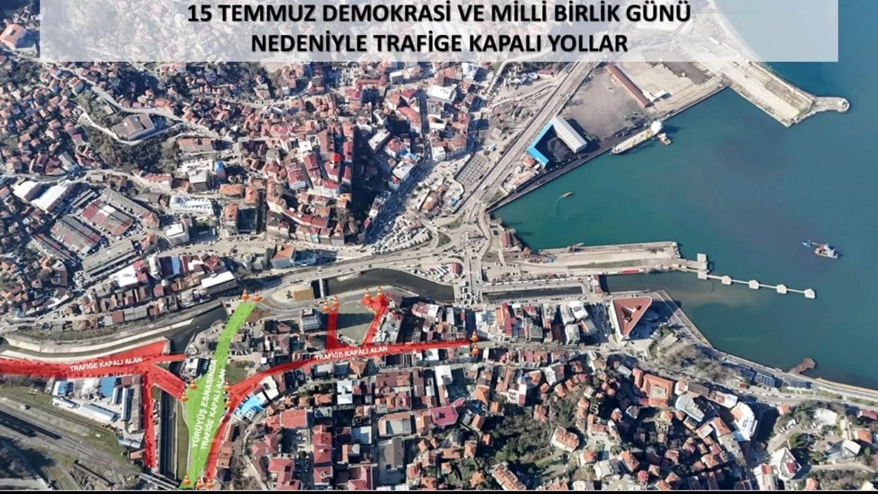 Zonguldak Emniyet Müdürlüğü, 15 Temmuz Demokrasi ve Milli Birlik Günü kapsamında kent merkezinde düzenlenecek etkinlikler dolayısıyla bazı yolların geçici olarak araç trafiğine kapatılacağını duyurdu.