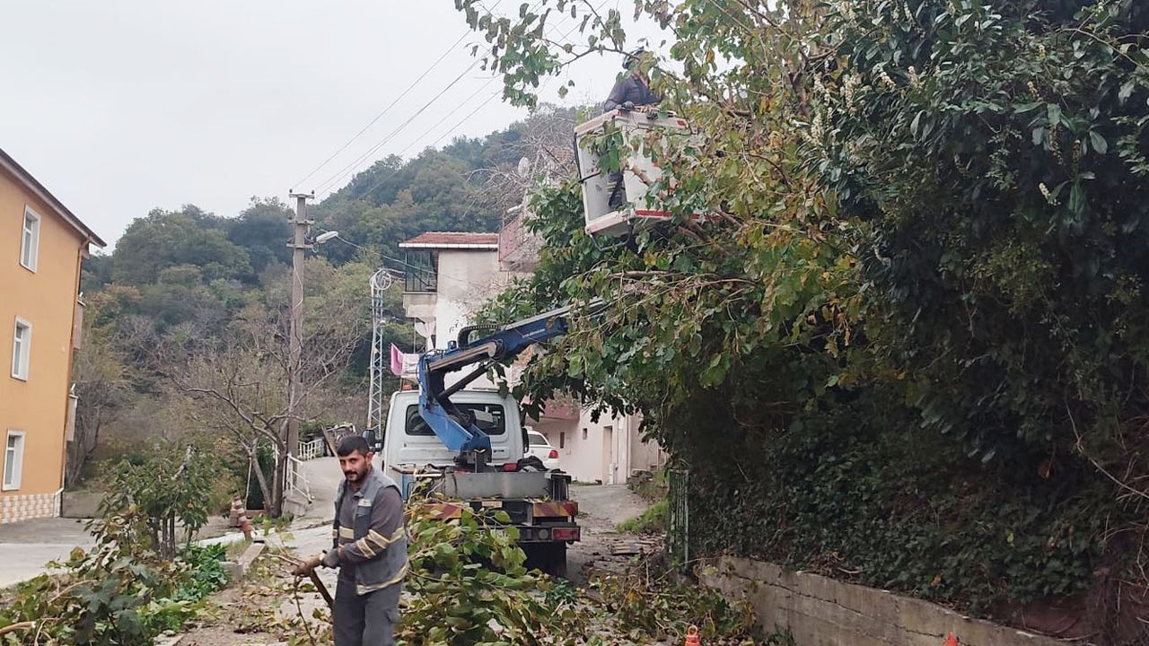 Şehir merkezinde elektrik hatlarının yer altına alınmadığı mahallelerde kış mevsimine karşı ekipler ağaçları buduyor.