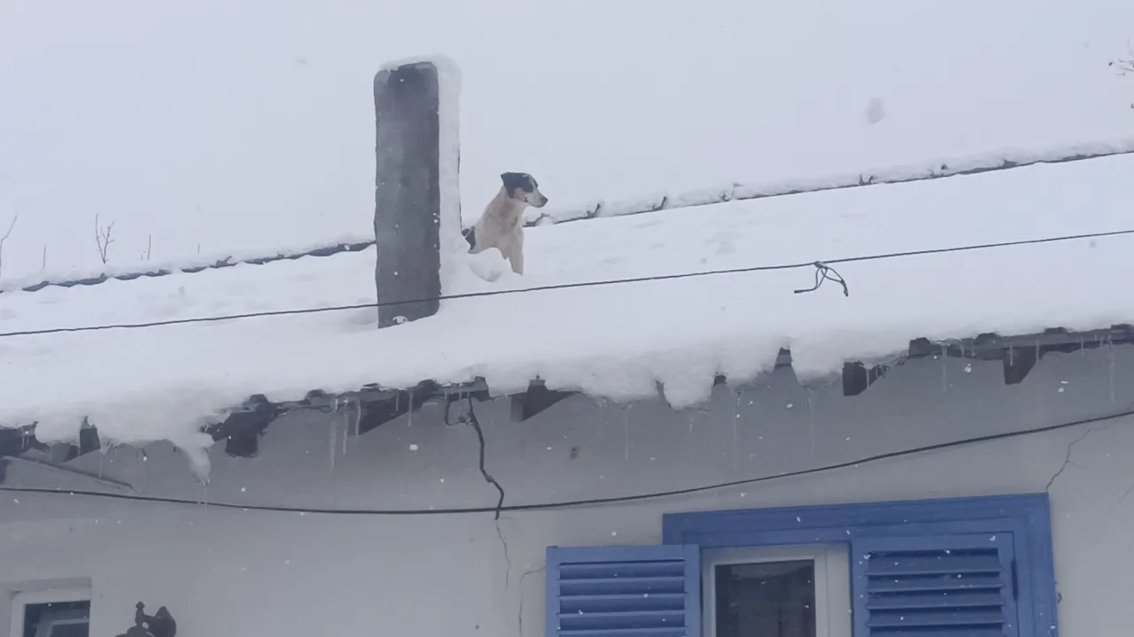 Bilecik'in Pazaryeri ilçesinde yoğun kar yağışı sırasında çatıda mahsur kalan yavru köpek, itfaiye ekiplerinin başarılı operasyonuyla güvenli şekilde indirildi.