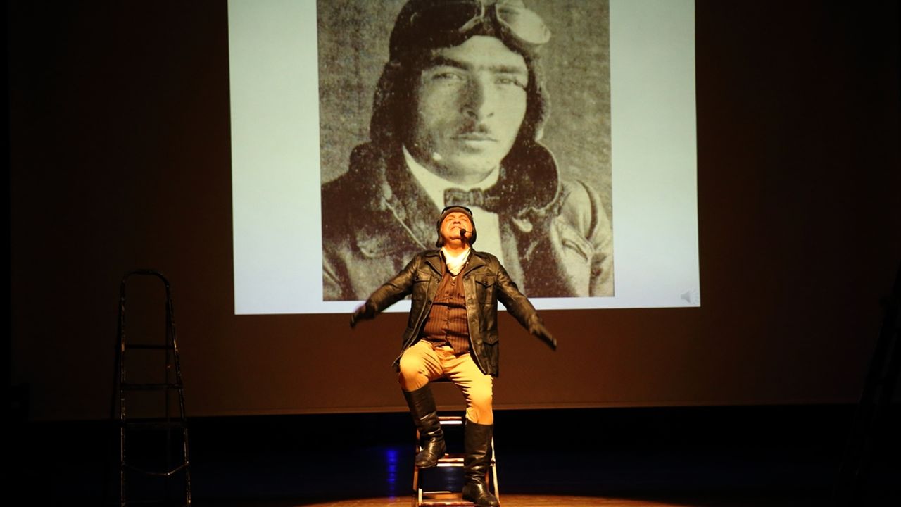 Türk Hava Kurumunun (THK) 100. yılı etkinlikleri kapsamında gençlere ve çocuklara havacılığı sevdirmek amacıyla Ankara'dan yola çıkan tek kişilik tiyatro oyunu, Anadolu turnesi kapsamında Çorum'da lise öğrencileriyle buluştu.