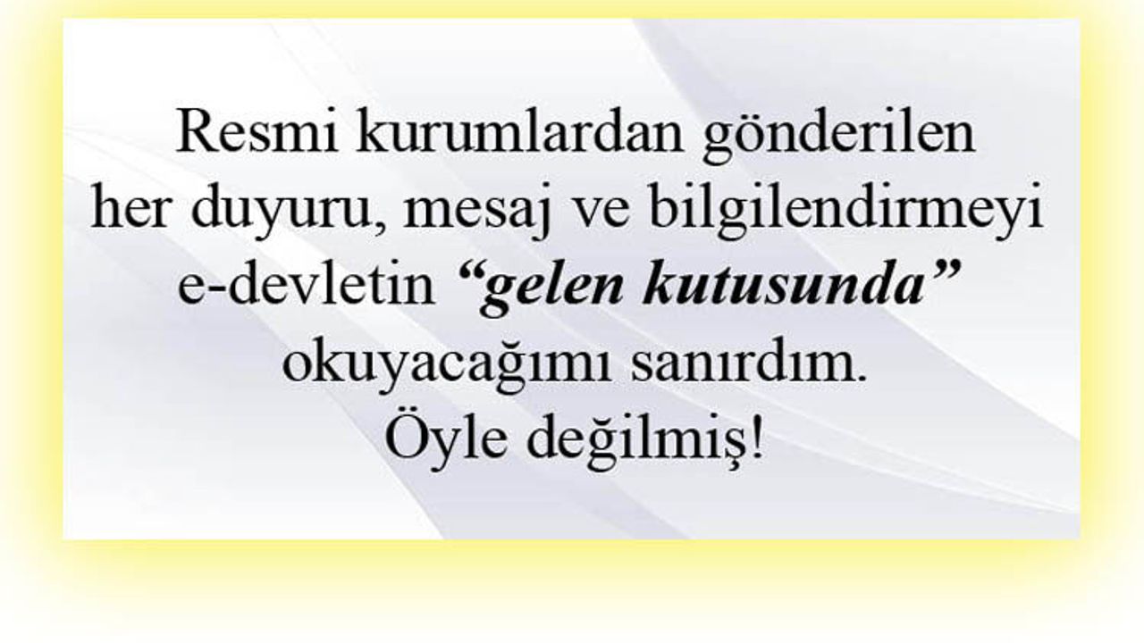 Şu ortaya çıktı ki, e-devletinize girdiğinizde “gelen mesaj” bölümüne bakıp da “bana bir şey gelmedi” demek olmuyor (muş)!