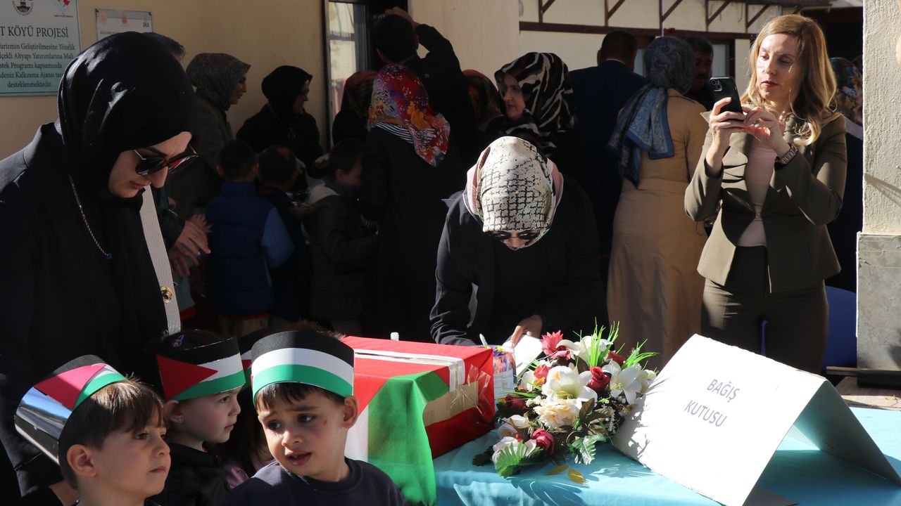 Etkinlik alanı, Türkiye ve Filistin bayraklarıyla süslendi.