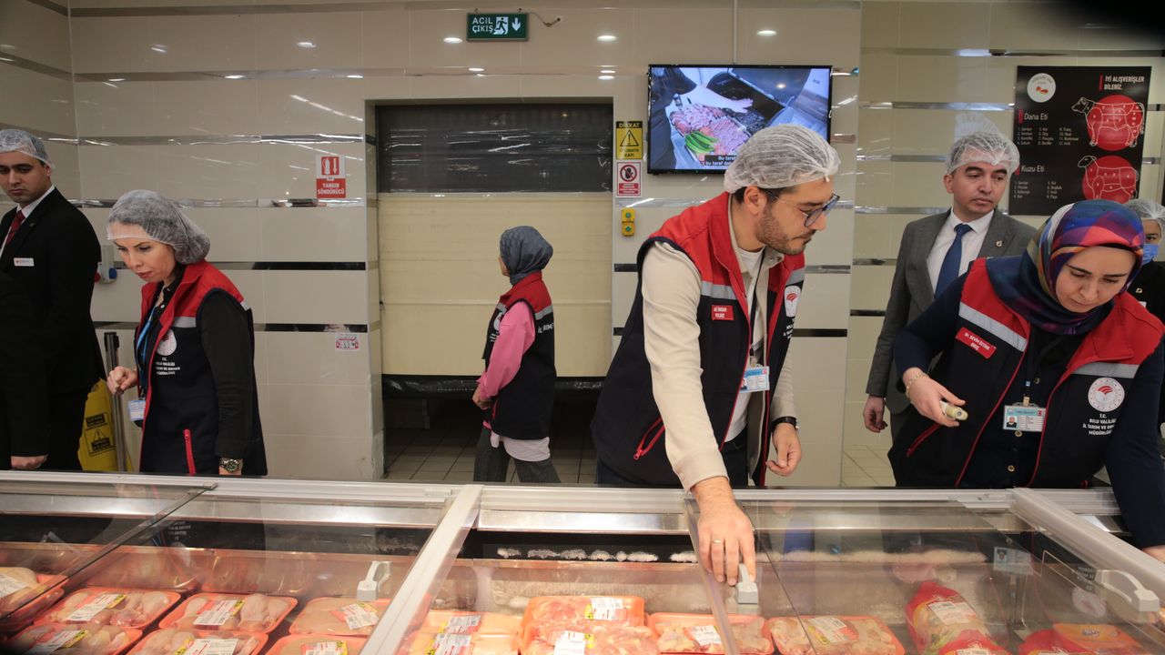 Denetim öncesi inceleme yapılacak alanda galoş giyip bone takan ekipler, işletmenin üretim, hazırlama, servis, satış, toplu tüketim ve depo alanlarını gıda güvenilirliği ve hijyen yönünden denetledi.