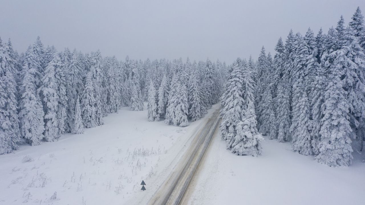 Öte yandan bölgede kar yağışı ve karla kaplı çam ağaçları havadan görüntülendi.