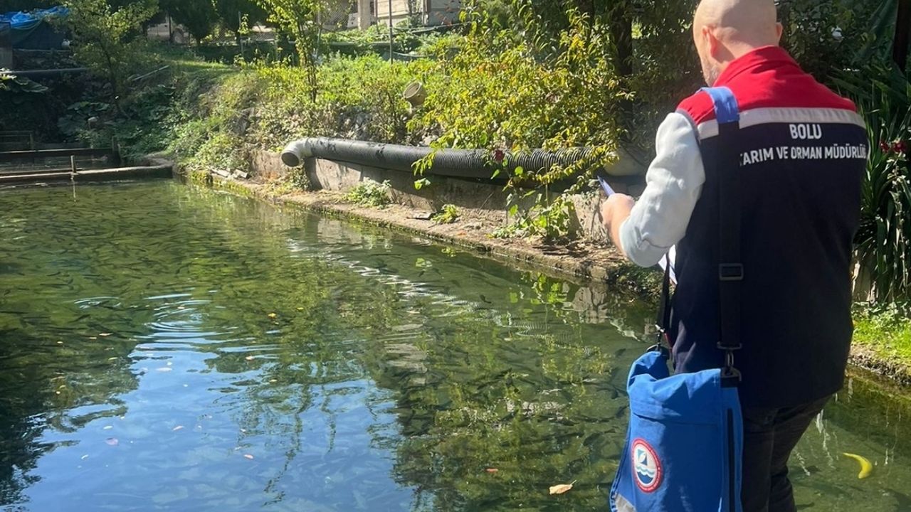 BOLU (AA) - Bolu'nun Mudurnu ilçesindeki su ürünleri yetiştiriciliği tesisleri denetleniyor.