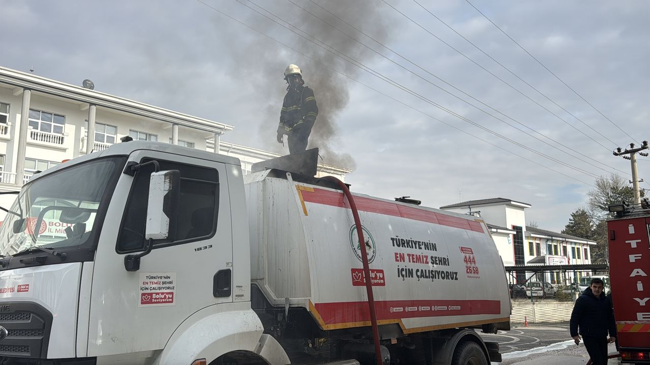 Tabaklar Mahallesi Necip Fazıl Kısakürek Bulvarı'nda çalışma yapan Bolu Belediyesi Temizlik İşleri Müdürlüğüne ait yol süpürme aracında yangın çıktı.