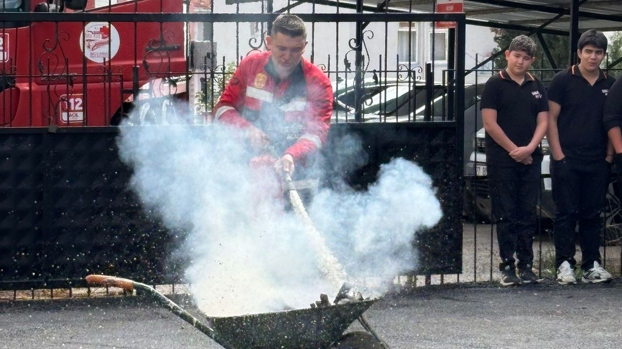 Etkinlik, öğrencilerin katılımıyla yapılan yangın söndürme tatbikatı ile sona erdi.