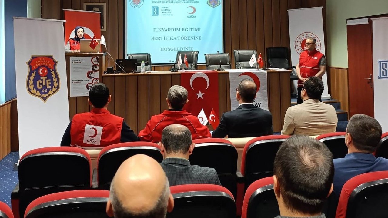 Boyabat Adliyesi Konferans Salonu'nda düzenlenen programda, İl Sağlık Müdürlüğü ekiplerince katılımcılara temel yaşam desteği, acil müdahale teknikleri ve kriz anlarında doğru refleks geliştirme konularında teorik ve uygulamalı bilgi aktarıldı.