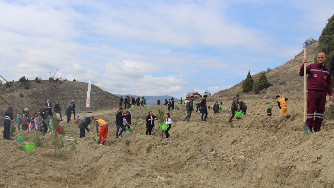 Fıstık çamı, servi, ceviz, badem ve dut fidanlarının toprakla buluşturulduğu etkinliğe, Kaymakam Enver Yılmaz, İlçe Emniyet Müdürü Metin Keskin, İlçe Orman İşletme Müdürü Abdullah Kapucu, diğer ilgililer ve öğrenciler katıldı.
