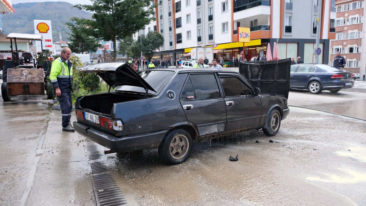 KASTAMONU (AA) - Kastamonu'nun Bozkurt ilçesinde akaryakıt istasyonunun çıkışında alev alan otomobilde hasar oluştu.