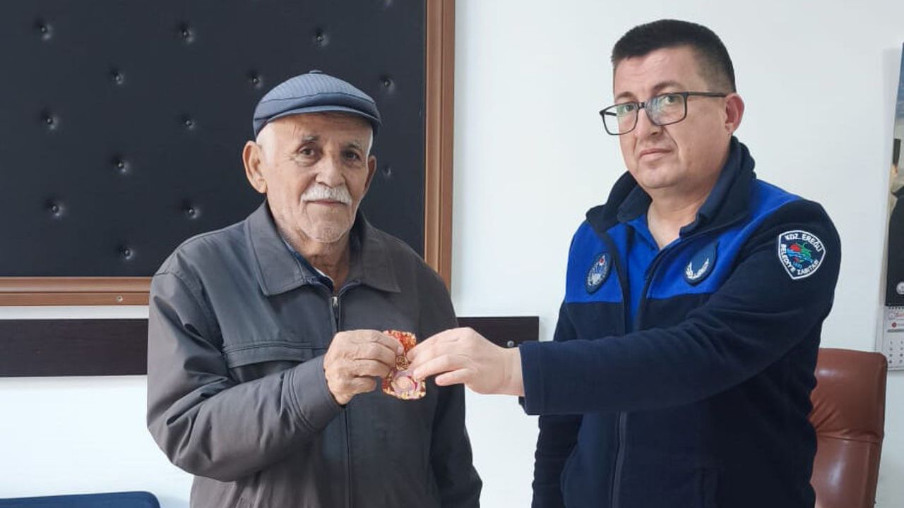 Karadeniz Ereğli Belediyesi Zabıta Müdürlüğü, duyarlı bir vatandaş tarafından bulunarak kendilerine teslim edilen altının sahibine ulaştırıldığını açıkladı.