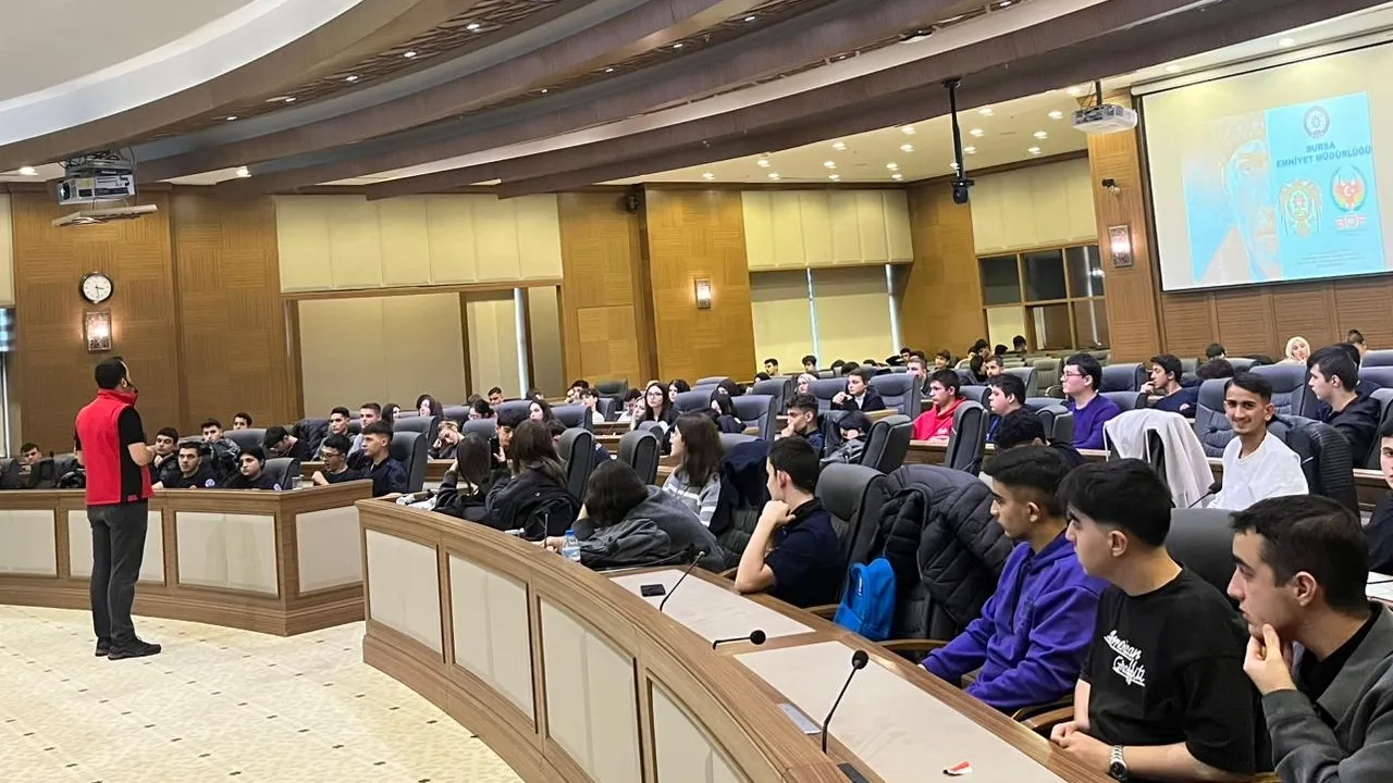 Bursa İl Emniyet Müdürlüğü uzman eğitmenleri tarafından asayiş, narkotik ve terörle mücadele konularında stajyerlerin farkındalıklarına artırmak amacıyla bilgilendirme yapıldı. Öğrencilere ayrıca iş sağlığı ve güvenliği, ilk yardım, çevre bilinci, sıfır atık ve iklim değişikliği, bağımlılık konularında eğitim verildi.