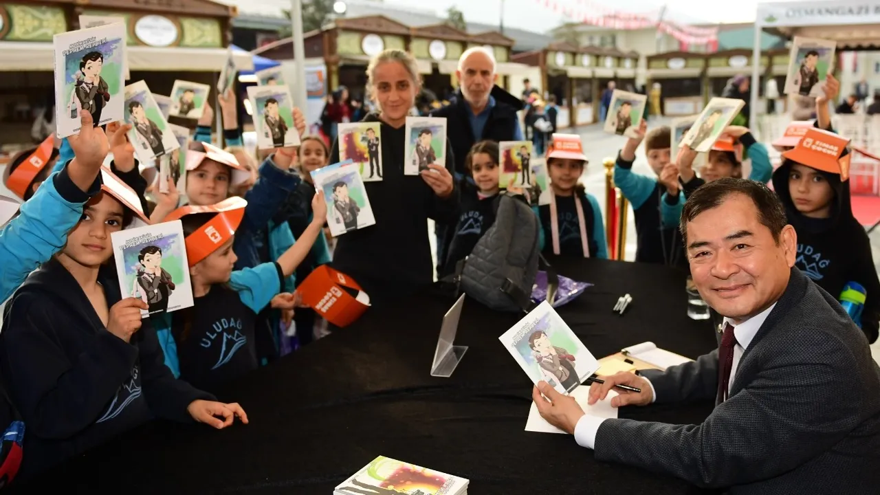 Konuşmaların ardından Yoshinori, kendisini dinlemeye gelen çocuklara kitaplarını imzalayarak hediye verdi. Bunun yanı sıra Osmangazi Belediye Başkan Yardımcısı Mutlu Esendemir ve Osmangazi Belediye Meclis Üyesi Özlem Bodur, hayat kurtaran bilgiler aktaran Japon deprem uzmanına teşekkür plaketi takdim etti.