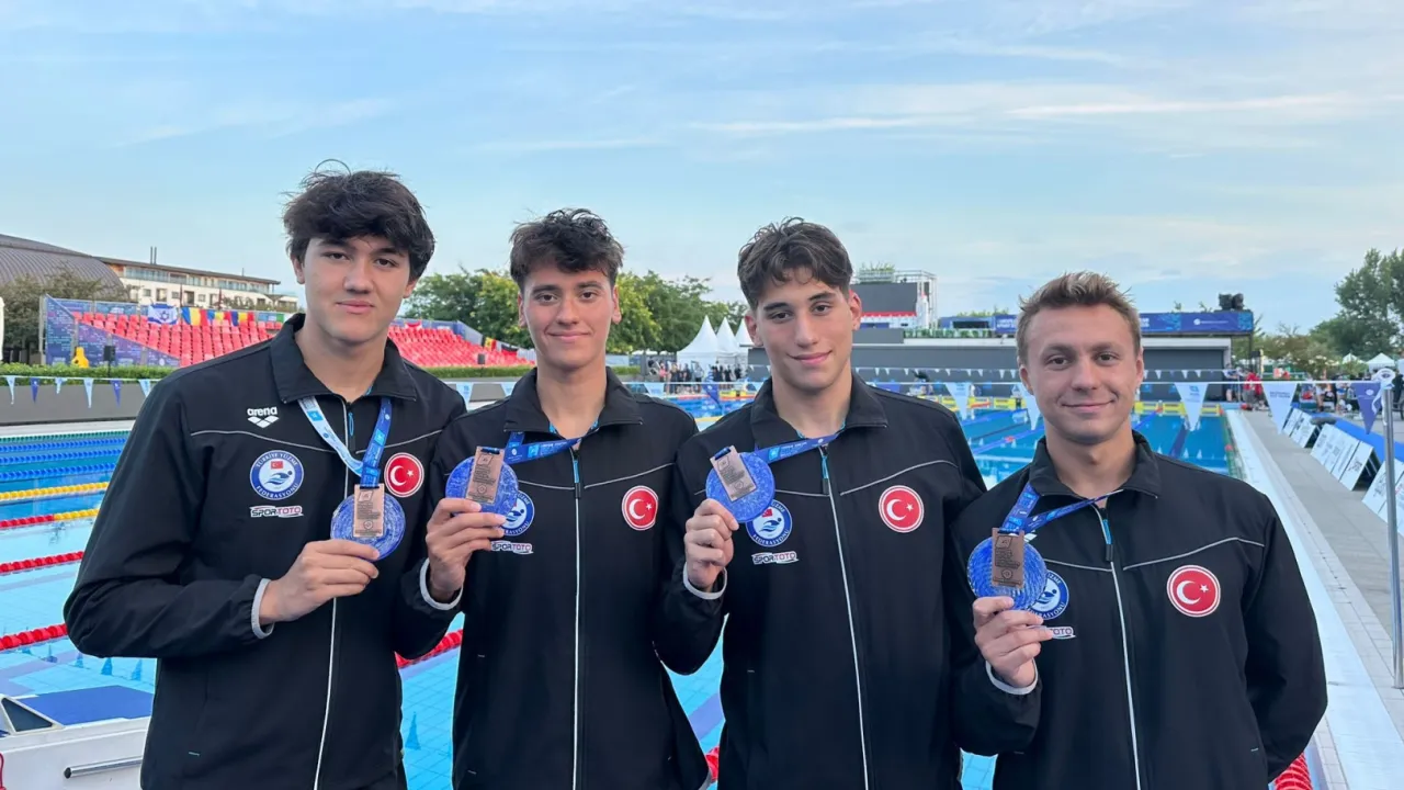 Avrupa Gençler Yüzme Şampiyonası’nda Erkekler 4x200 metre serbest bayrak yarışında mücadele eden Bursa Büyükşehir Belediyespor yüzücüsü Özgür Yonca ile Ahmet Mete Boylu, Tuncer Berk Ertürk ve Kuzey Tuncelli’den oluşan Milli Bayrak Tamımız, 7.20.67'lik dereceyle Avrupa üçüncüsü oldu.BURSA (İGFA) - Slovakya’nın Samorin kentinde düzenlenen Avrupa Gençler Yüzme Şampiyonası’nda Erkekler 4x200 metre serbest bayrak yarışında mücadele eden Milli Bayrak Takımı'nda yer alan Bursa Büyükşehir Belediyesporlu Özgür Yonca, büyük bir başarıya imza attı.
