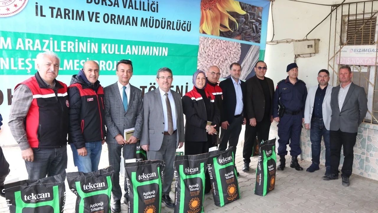Bursa'da tarımsal üretimi güçlendirmek ve tarım arazilerini daha etkin kullanmak amacıyla önemli bir adım daha atıldı. Tarım ve Orman Bakanlığı tarafından yürütülen Tarım Arazilerinin Kullanımının Etkinleştirilmesi (TAKE) Projesi kapsamında, Bursa'nın üç ilçesinde 268 üreticiye yüzde 75 hibe destekli toplam 236 torba yağlık ayçiçeği tohumu dağıtıldı.