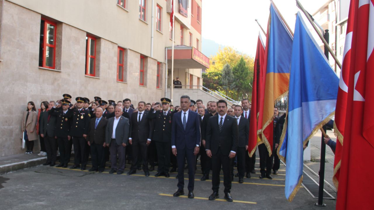 Espiye'de Kaymakamlık binası önünde gerçekleşen törende, Atatürk Anıtı'na çelenk sunuldu.