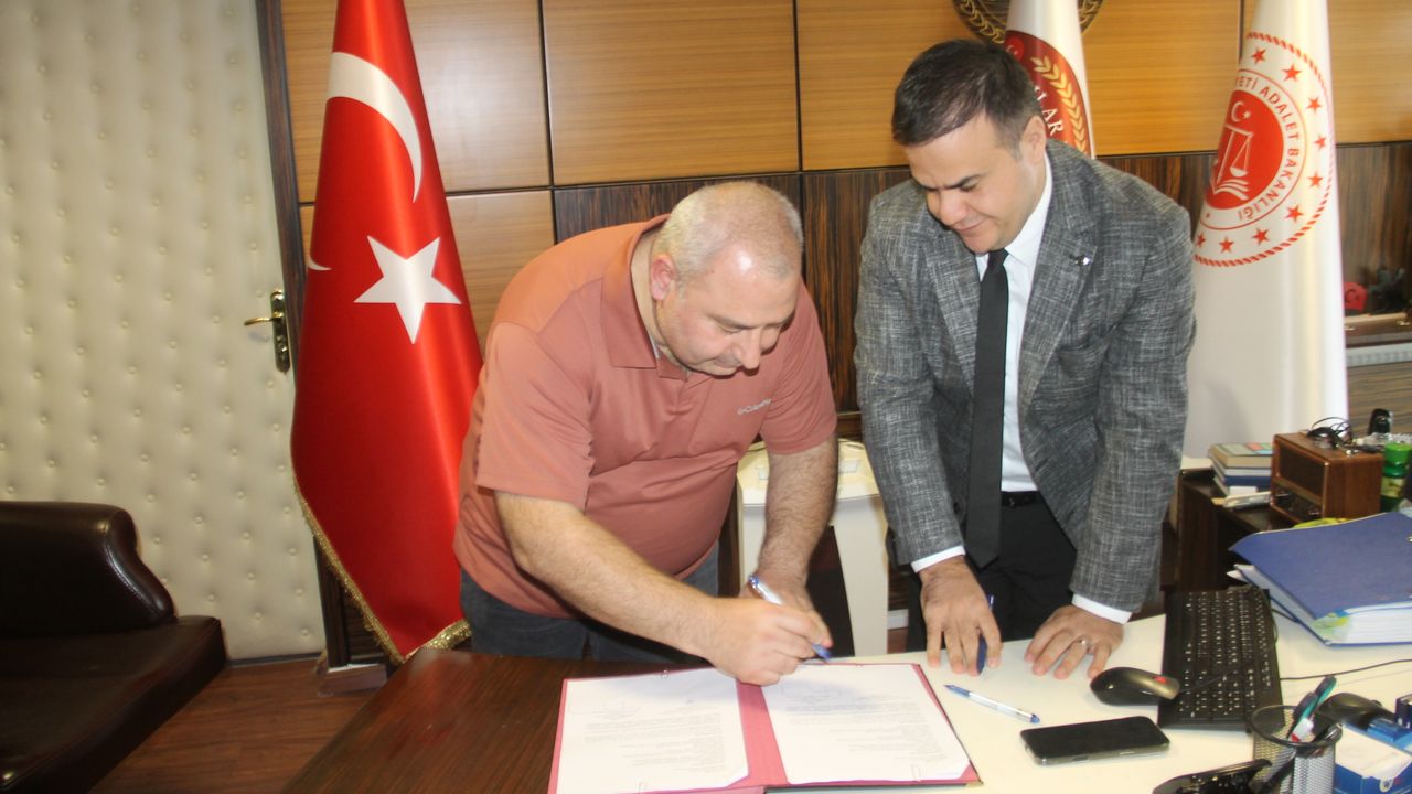 Adalet Teşkilatını Güçlendirme Vakfı tarafından Çarşamba Adalet Sarayında çalışan personel için alınan 17 dairenin protokolü Çarşamba Cumhuriyet Başsavcısı Çağrı Gir ve Mehmet Çevikel Ticari Yatırımlar Sanayi ve Ticaret Anonim Şirketi yetkilisi Yusuf Çevikel tarafından Başsavcı Gir'in makamında imzalandı.