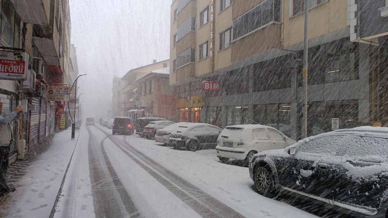 Beyaza bürünen ilçede kar yağışı aralıklarla devam ediyor.